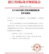 各地市协会: 根据浙江省国际体育舞蹈协会2022年年度工作计划和当前形势,经研究,决定即日起开展2022年度浙江省体育舞蹈等级达标考核,考核将继续采用“线下”和“线上”相结合的方式,请各地市做好考级现场的组织工作和安全保障工作,并配合当地防疫部门做好新冠疫情防疫工作,请相关单位根据文件要求执行。 特此通知。