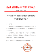 2024 年浙江省国际体育舞蹈协会考官资格名单,已经第六届理事会第五次会长办公会议审议通过,现对考官资格名单进行公示。